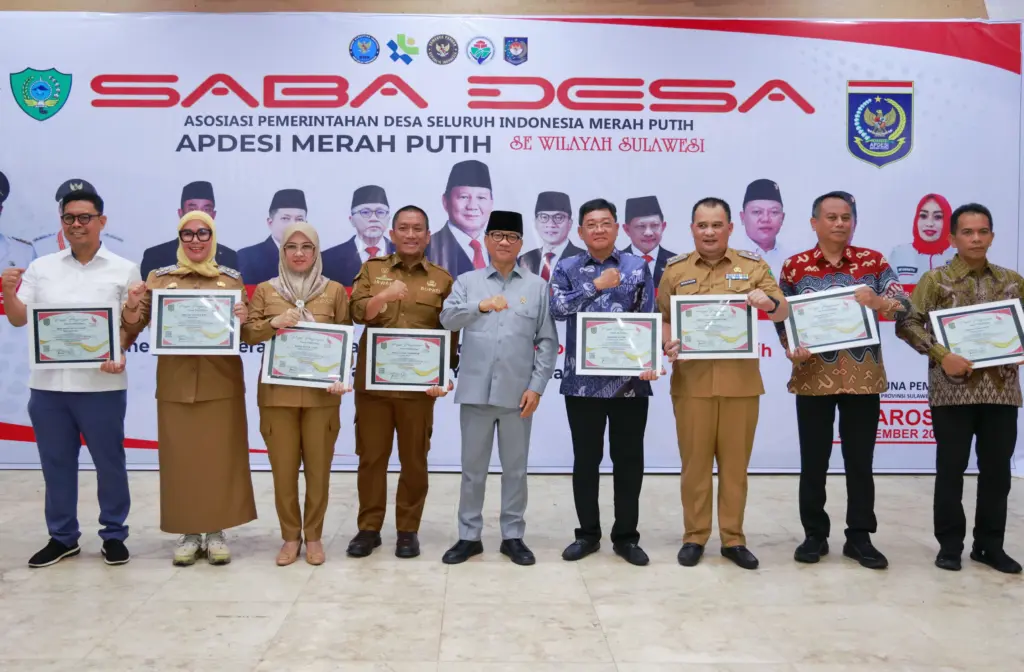 Penghargaan tersebut diserahkan langsung oleh Menteri Desa dan Pembangunan Daerah Tertinggal, Yandri Susanto, pada kegiatan Saba Desa Asosiasi Pemerintahan Desa Seluruh Indonesia Merah Putih (APDESI Merah Putih) se-Wilayah Sulawesi di Gedung Serbaguna Kabupaten Maros, Selasa (2/12/2025).