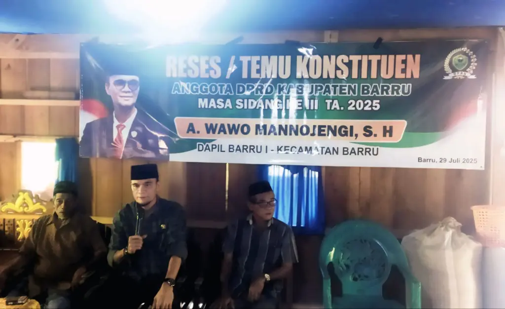 Barru, IdieaNews.com – Anggota DPRD Kabupaten Barru dari Daerah Pemilihan (Dapil) Barru I, Andi Wawo Mannojengi, S.H., menggelar kegiatan Reses/Temu Konstituen dalam rangka Masa Sidang Ke-III Tahun Sidang 2025. Kegiatan ini dihadiri oleh tokoh masyarakat dan tokoh agama, serta bertujuan untuk menjaring aspirasi masyarakat dan memperkuat komunikasi antara wakil rakyat dan warga di wilayah Kecamatan Barru, khususnya di Dusun Kalompi, 29 Juli 2025 Desa Galung.