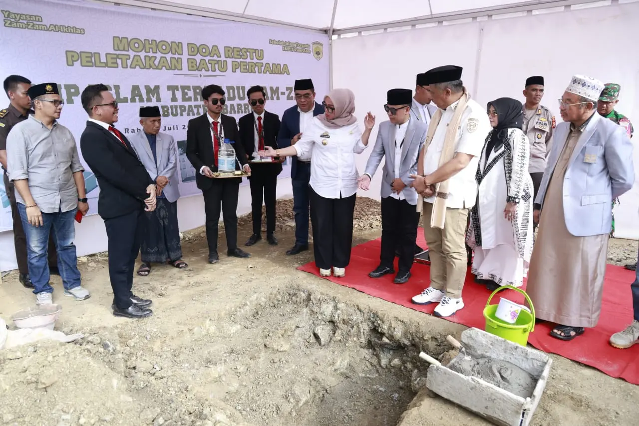 Barru, IdieaNews.com – Bupati Barru, Andi Ina Kartika Sari, SH., M.Si., bersama Wakil Bupati, Dr. Ir. Abustan A. Bintang, M.Si., menghadiri peletakan batu pertama pembangunan SMP Islam Terpadu Zam-Zam Center yang berlokasi di Kelurahan Mangempang, Kecamatan Barru, Rabu (09/07/2025)