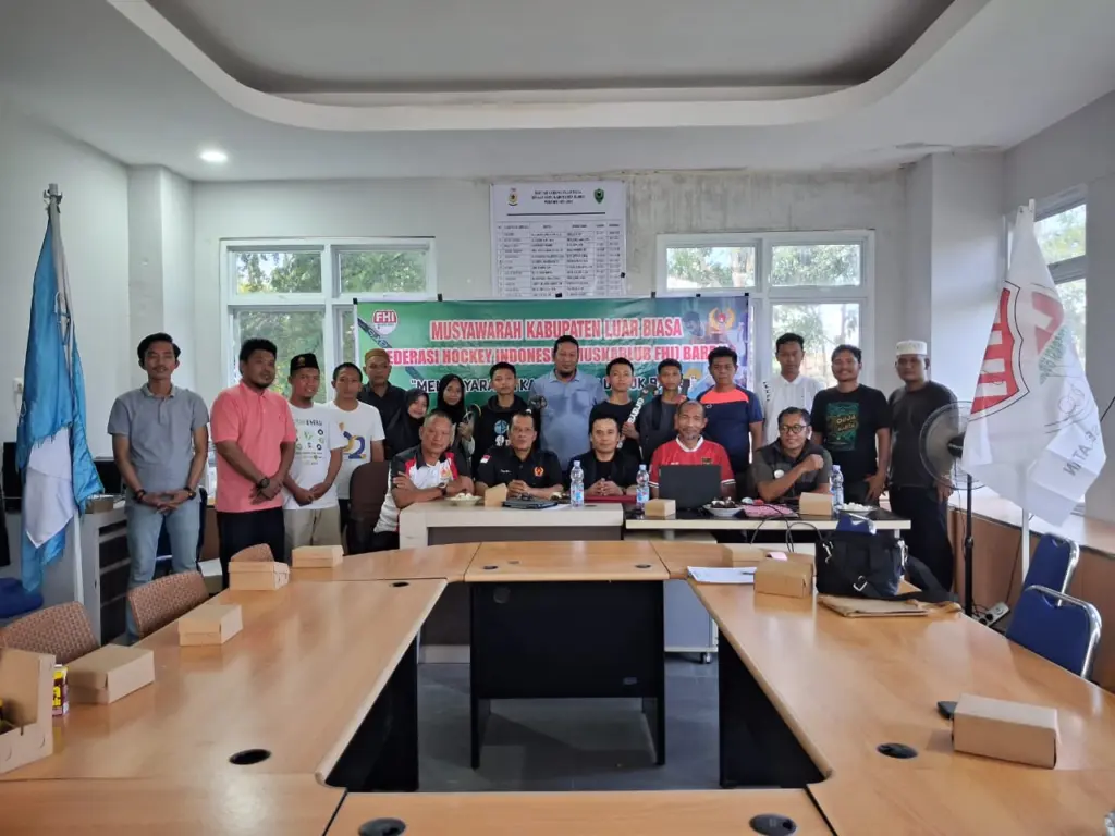 Barru, IdieaNews.com – Federasi Hockey Indonesia (FHI) Sulawesi Selatan bersama Komite Olahraga Nasional Indonesia (KONI) Kabupaten Barru menggelar Musyawarah Kabupaten Luar Biasa dengan tema “Memasyarakatkan Hockey untuk Barru”. Dalam acara tersebut, Muhammad Fadli terpilih secara aklamasi sebagai Ketua FHI Kabupaten Barru periode berikutnya. Acara ini berlangsung di Kantor KONI Barru, dihadiri langsung oleh Pengurus Provinsi Federasi Hockey Indonesia Sulawesi Selatan Gajahmada Harding, SS, M. Si selaku Ketua Umum dan Muskarnain Yunus, S.Pd selaku Sekum, serta Pengurus Koni Kab.Barru, tampak hadir Muhammad Syathir, S.Pd., M.Pd, selaku Wakil Ketua Bidang Organisasi dan Drs. Alimin, SAP selaku Sekretaris Koni Kab.Barru. Minggu (03/08/2025)