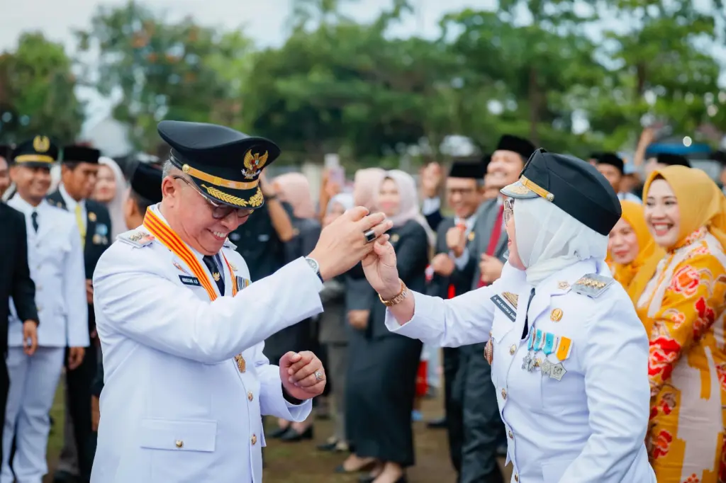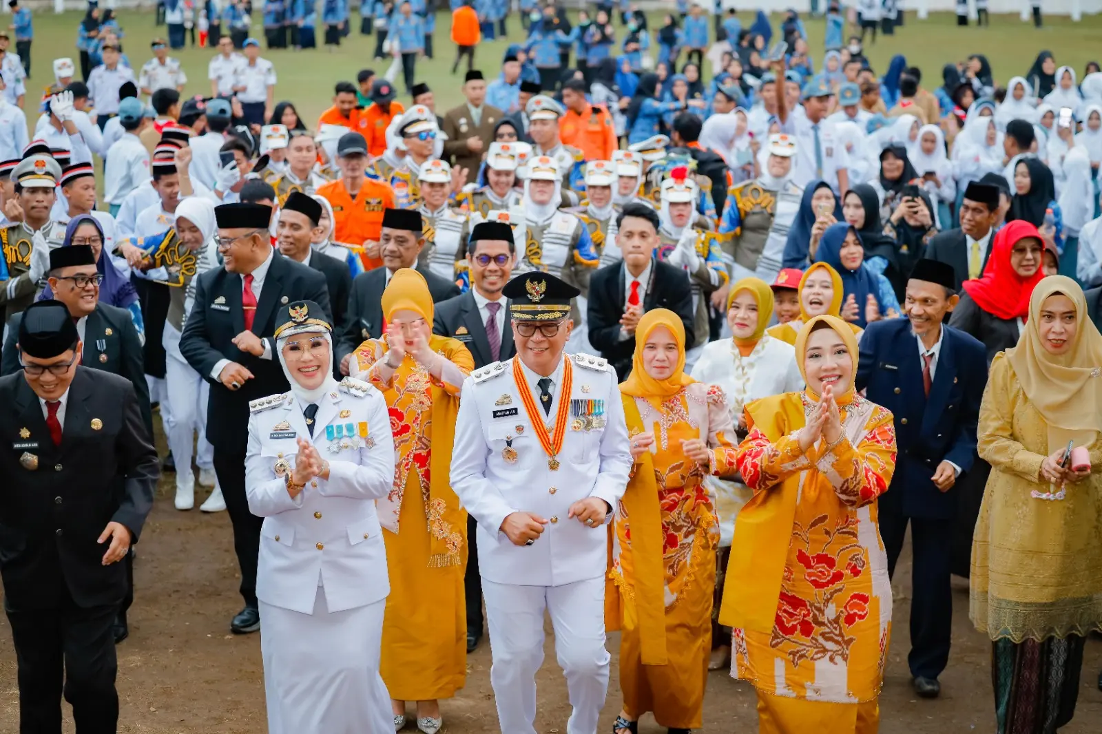 Tak berhenti di situ. Musik pengiring yang riang terdengar mengalun, dan Bupati bersama Wakil Bupati pun ikut berjoget ringan. Suasana betul-batul cair, tawa pecah di mana-mana. Seakan tak ada lagi jarak antara pemimpin dan rakyatnya. Yang ada hanya kebersamaan di hari besar bangsa ini.