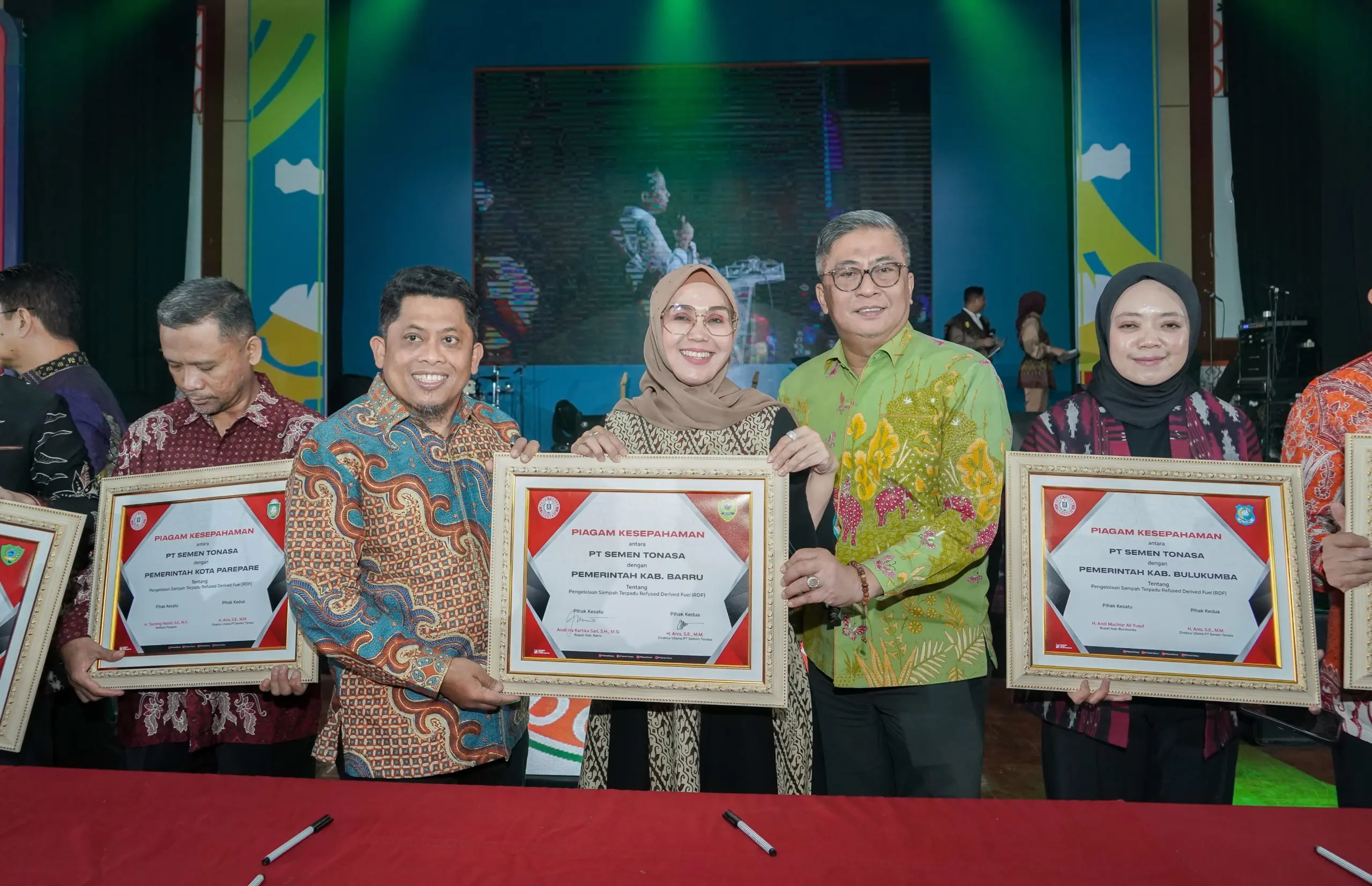 Bertempat di Auditorium PT. Semen Tonasa Pangkep, Bupati Barru Andi Ina Kartika Sari, S.H., M.Si. dan Dirut PT Semen Tonasa, H. M. Anis, SE. MM menandatangani Kesepakatan Bersama antara Pemerintah Kabupaten Barru dan PT Semen Tonasa tentang Pengelolaan Sampah Melalui Teknologi Refuse Derived Fuel (RDF), Jumat 31/10/2025 malam.