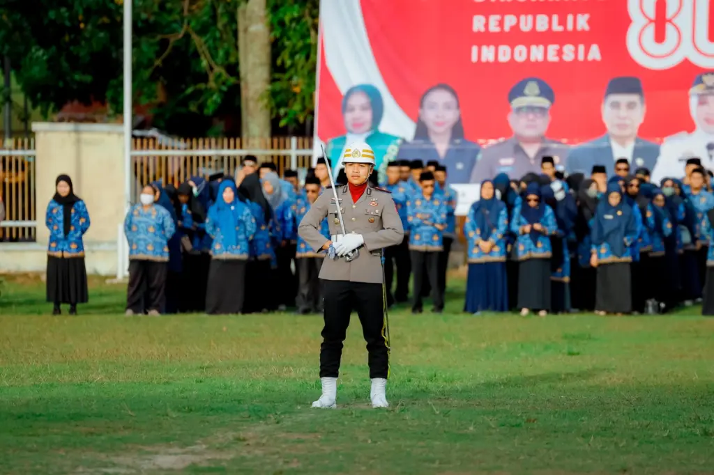 Di bawah komandonya, pasukan pengibar bendera menurunkan Sang Merah Putih dengan sempurna dan penuh hormat, menghadirkan momen yang menginspirasi. Suaranya yang menggelegar saat memberikan penghormatan dan laporan kepada Inspektur Upacara, Wakil Bupati Abustan A. Bintang, menambah khidmat suasana menunjukkan disiplin dan profesionalisme yang tinggi.