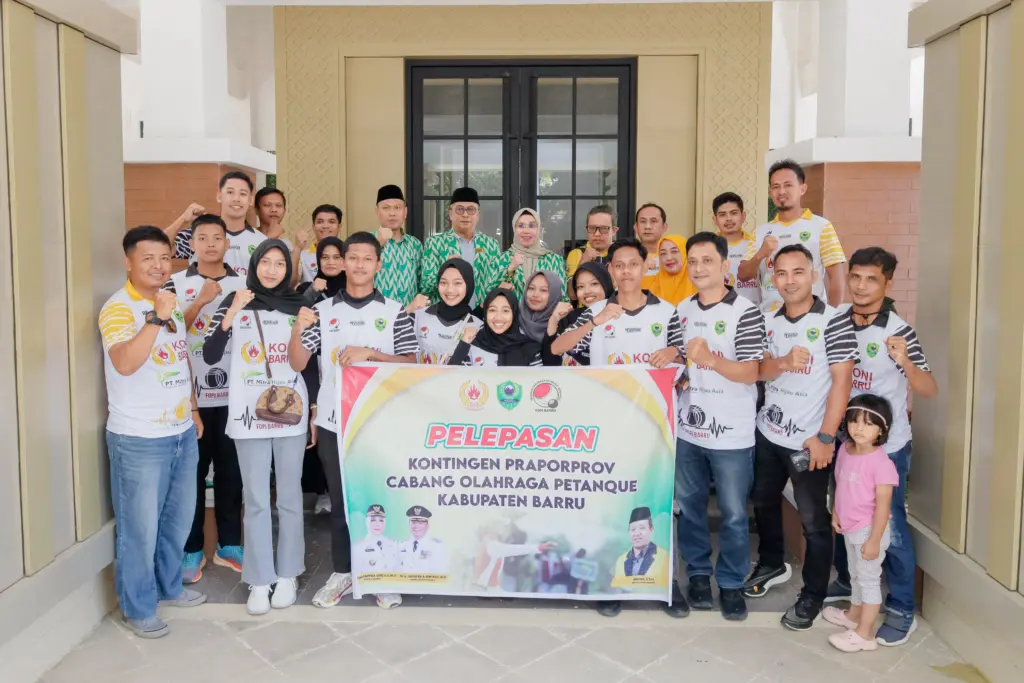 BARRU, IdieaNews.com — Pemerintah Kabupaten (Pemkab) Barru secara resmi melepas kontingen atlet Petanque yang akan bertanding pada Pra Pekan Olahraga Provinsi (Porprov) Sulawesi Selatan. Acara pelepasan berlangsung di Rumah Jabatan Bupati Barru pada Senin, 29 September 2025, yang dihadiri langsung oleh Bupati dan Wakil Bupati Barru.