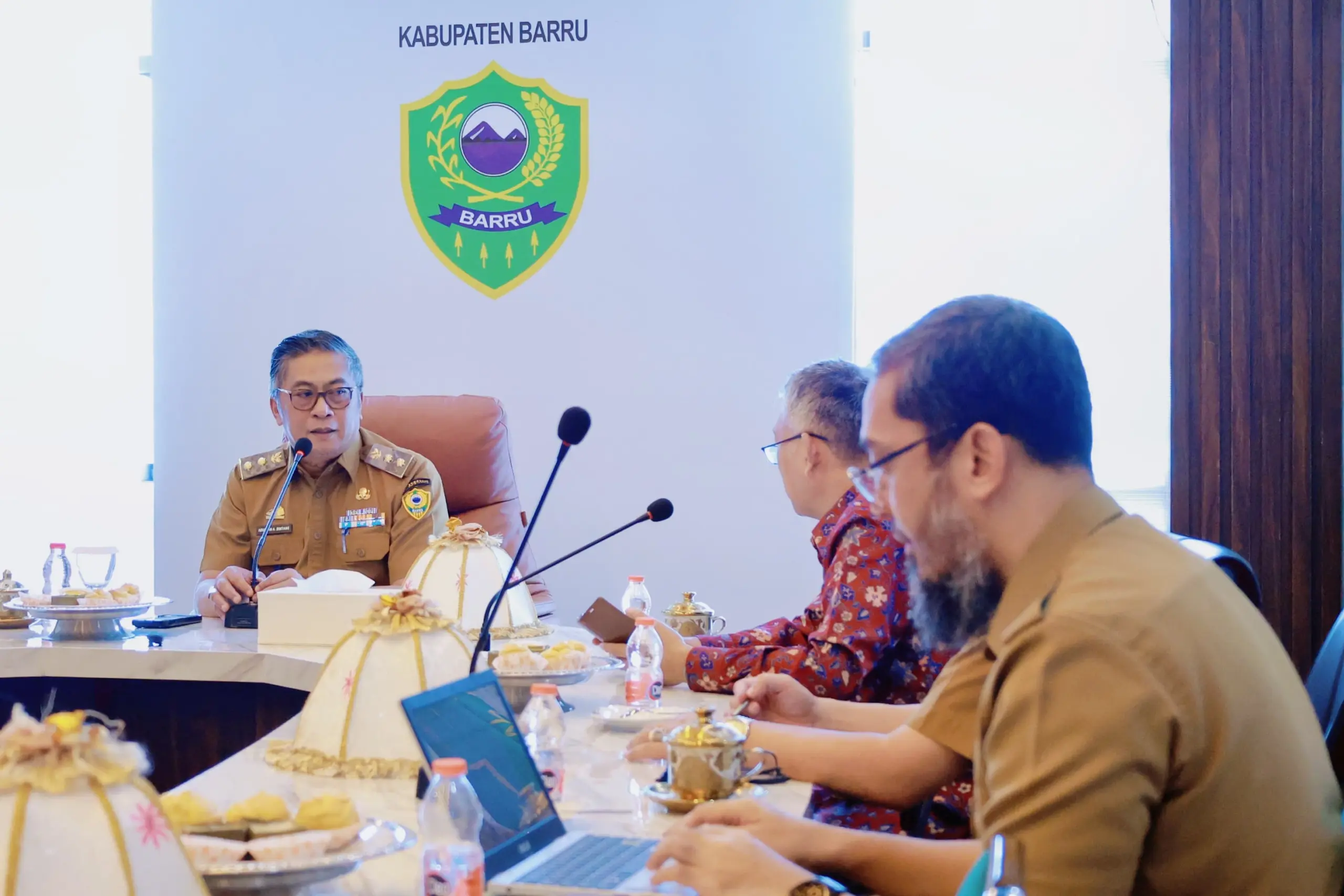 Audiensi yang digelar di Ruang Rapat Pimpinan Lantai 5 MPP Kantor Bupati Barru, dipimpin langsung oleh Wakil Bupati Barru, Dr. Ir. Abustan A. Bintang, M.Si., dalam sambutannya menyampaikan salam hormat sekaligus permohonan maaf dari Bupati Barru, Andi Ina Kartika Sari, S.H., M.Si., yang berhalangan hadir karena mengikuti agenda penting lainnya.