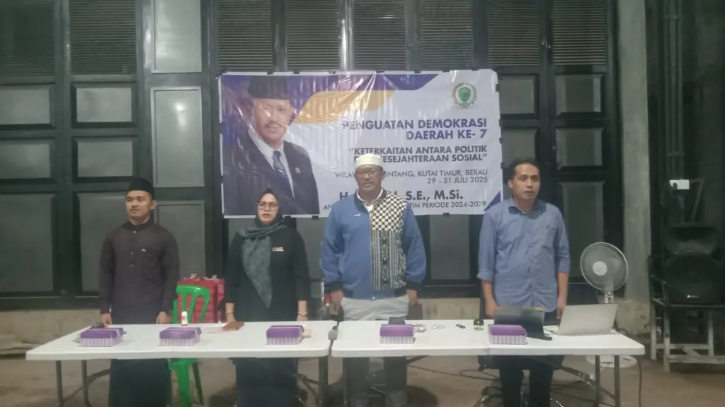 Kaltim, IdieaNews.com – Upaya penguatan Demokrasi Daerah di Kalimantan Timur. kegiatan bertajuk “Penguatan Demokrasi Daerah ke-7” digelar di Desa Spaso Barat, Kecamatan Bengalon, Wilayah VI Bontang, Kutai Timur – Berau. Acara ini mengangkat tema “Keterkaitan Antara Politik dan Kesejahteraan Sosial” berlangsung dari pukul 21.00 hingga 23.40 WITA, 31/7/2025