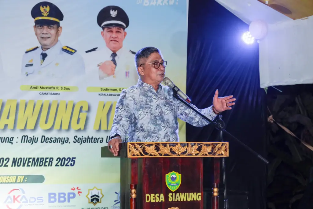 Barru, IdieaNews.com – Mewakil Bupati Barru, Wakil Bupati Barru, Dr. Ir. Abustan A. Bintang, M.Si., menghadiri puncak peringatan Hari Ulang Tahun (HUT) ke-33 Desa Siawung, yang digelar di halaman Kantor Desa Siawung, Kecamatan Barru, Minggu (2/11/2025) malam.